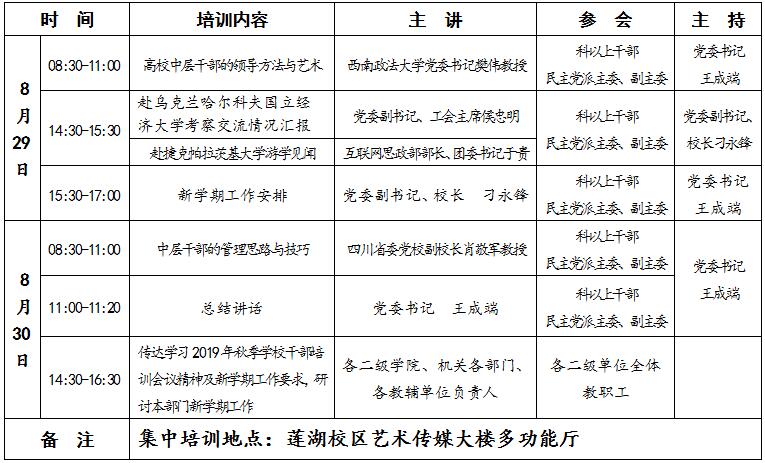 2019年秋季干部培训通知