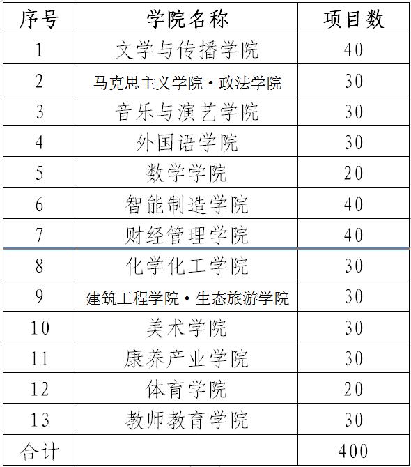 依据二级学院人数按比例确定各学院最少参与项目数量要求如下: