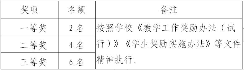 表2 奖项设置与奖金