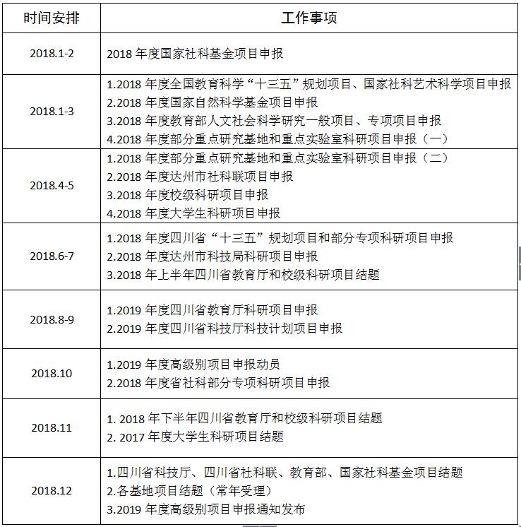 为更好地服务全校师生的科研工作,根据各级各类科研项目申报与结题时间节点规律,现将ac米兰2018年度各级各类科研项目申报和结题时间安排预通知如下,请各位教师提前做好相关准备工作。