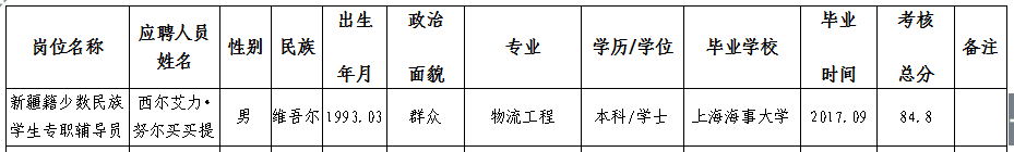 按照《ac米兰官网中文网站2018年考核招聘新疆籍少数民族学生专职辅导员公告》,考核小组对应聘ac米兰新疆籍少数民族学生专职辅导员进行了考核。经学校研究,现将考核结果公示如下,公示期限为7个工作日(2018年1月24日至2018年2月1日)。公示期间接受社会监督和举报,举报者应以真实姓名书面或电话向ac米兰官网中文网站人事处或纪委反映。监督举报电话:0818-2790077、0818-2790019, 邮箱:scwlrsc@126.com、jwjsc@sohu.com。