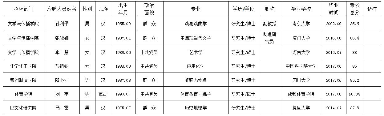 按照《ac米兰官网中文网站2017年考核招聘高层次人才、艺术类和体育类专任教师公告》,由学校纪委监督,考核小组对应聘ac米兰专任教师、科研人员进行了考核。经学校研究,现将考核结果公示如下,公示期限为7个工作日(2017年6月8日至2017年6月16日)。公示期间接受社会监督和举报,举报者应以真实姓名书面或电话向ac米兰官网中文网站人事处或纪委反映。监督举报电话:0818-2790077、0818-2790019 邮箱:scwlrsc@126.com、jwjsc@sohu.com。