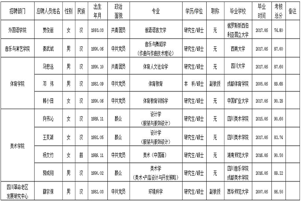 按照《ac米兰官网中文网站2017年人才招聘公告》,由学校纪委监督,考核小组对应聘ac米兰的专任教师、科研人员进行了考核。经学校研究,现将考核结果公示如下,公示期限为7个工作日(2017年1月16日至2017年1月24日)。公示期间接受社会监督和举报,举报者应以真实姓名书面或电话向ac米兰官网中文网站人事处或纪委反映。监督举报电话:0818-2790077、0818-2790019 邮箱:scwlrsc@126.com、jwjsc@sohu.com。