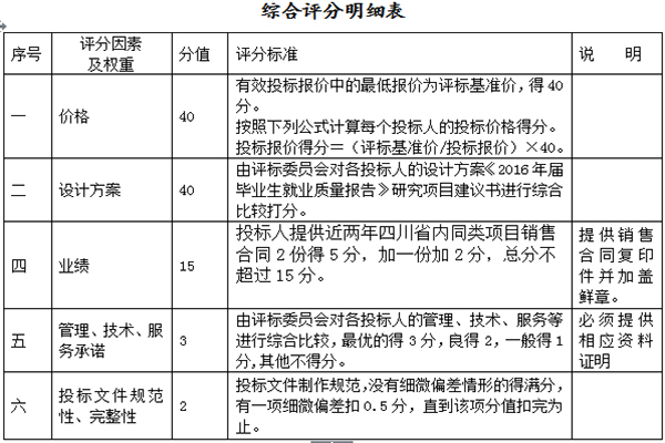 1.项目内容:本次招标项目:编制ac米兰官网中文网站《2016年届毕业生就业质量年度报告》,最高限价4.5万元。大写:肆万伍仟元。