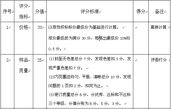 期刊排版、印刷业务招标综合评分标准