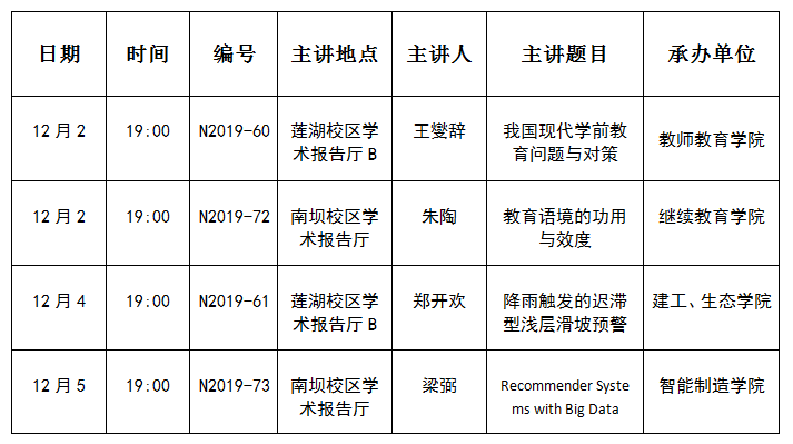 下一条:2019年度秋季第十三周学术讲座安排(2019.11.25-12.01)