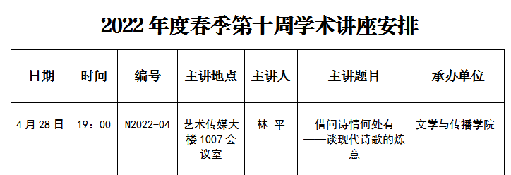 2022年度春季第十周学术讲座安排