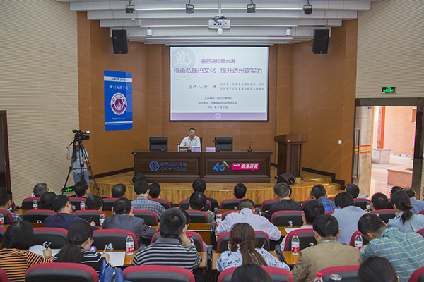 胥健先生以“一方水土养一方人”趣说巴蜀之异拉开讲座帷幕,分别就巴文化的起源进行梳理,对巴文化的核心价值理念予以解读。他指出,巴文化源远流长,是始源于巴人巴国、植根于巴地巴山、由巴地人民共同创造的厚重灿烂的地域文化。达州作为巴文化的发祥地,底蕴深厚,资源广博,人文古迹和非物质文化遗产众多,集中体现了忠、勇、信、义等核心价值理念。