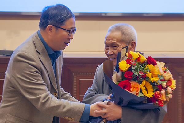 整场报告历时3个小时,主会场图书馆学术报告厅A厅座无虚席,大家聚精会神聆听报告,对陈老的精彩报告数次报以热烈的掌声。86岁的陈老精神矍铄,思路清晰,声音洪亮,语言朴实,以一张张生动的照片、一个个真实的故事和一段段难忘的经历带领全体师生追忆老一辈科学家热爱祖国、无私奉献,自力更生、艰苦奋斗,大力协同、勇于登攀的“两弹一星”精神。