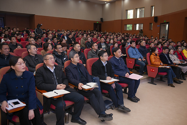 达州市市直机关的领导和嘉宾出席报告会。学校在家校领导,相关学院、部门领导干部和教师代表聆听报告。