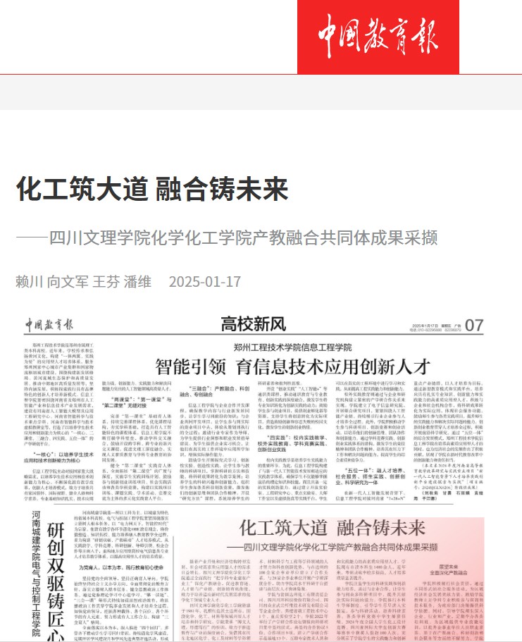 随着产业升级和经济结构转型发展,社会对高素质应用型人才的需求日益增长。ac米兰官网中文网站化学化工学院通过全面践行“把学科专业建在产业上”深化产教融合,促进教育链、人才链与产业链、创新链有机衔接,致力于培养适应新时代发展需求的化学化工领域专业人才。