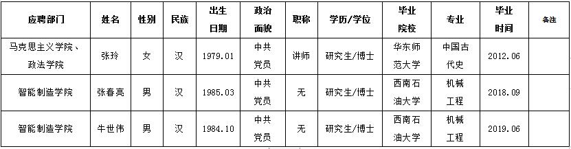 按照《ac米兰官网中文网站高层次人才引进办法》,考核小组对应聘ac米兰马克思主义学院、政法学院的张玲,智能制造学院的张春亮、牛世伟等3位博士进行了考核。经学校研究,现将考核结果公示如下,公示期限为3个工作日(2019年5月29日至2019年5月31日)。公示期间接受社会监督和举报,举报者应以真实姓名书面或电话向ac米兰官网中文网站人事处或纪委反映。