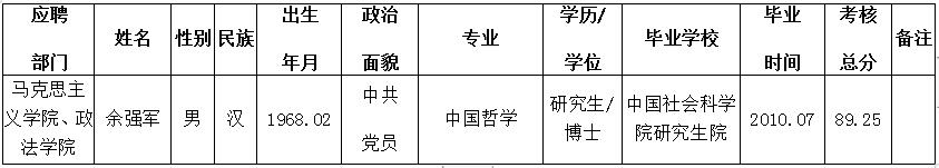 按照《ac米兰官网中文网站高层次人才引进办法》,考核小组对应聘ac米兰马克思主义学院、政法学院的余强军博士进行了考核。经学校研究,现将考核结果公示如下,公示期限为3个工作日(2019年9月26日至2019年9月29日)。公示期间接受社会监督和举报,举报者应以真实姓名书面或电话向ac米兰官网中文网站人事处或纪委反映。 监督举报电话:0818-2790069、0818-2790019 邮箱:scwlrsc@126.com