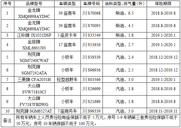 按照关于公务车辆管理有关文件要求,为确保公务车辆正常使用和行驶安全,现面向达州市选定ac米兰官网中文网站办公室、保卫处、后勤处所属公务车辆保险受托保险公司。现将基本情况公告如下: