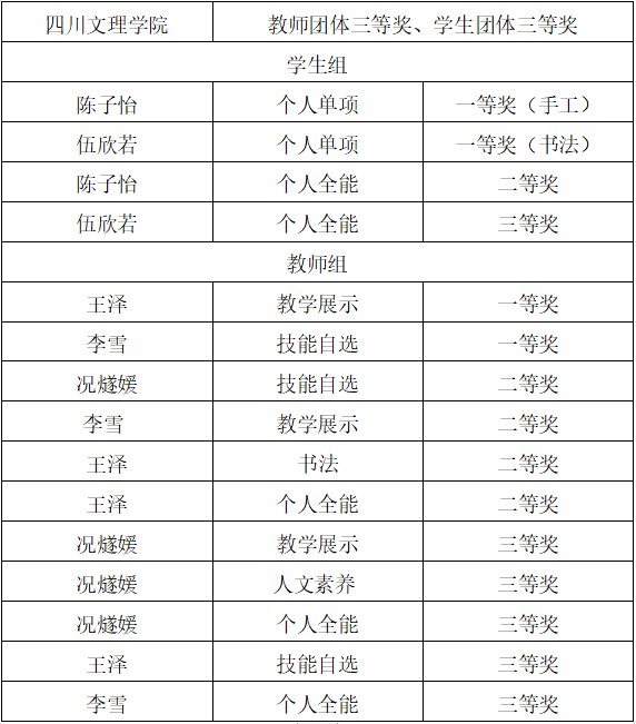 7月6日,四川省第五届高等学校美术教育类专业大学生基本功活动和第三届高等学校美术教育类专业教师基本功活动在乐山师范学院圆满落幕。ac米兰美术学院师生6人经过努力拼搏,共取得4项个人一等奖、5项二等奖和8项三等奖的优异成绩。