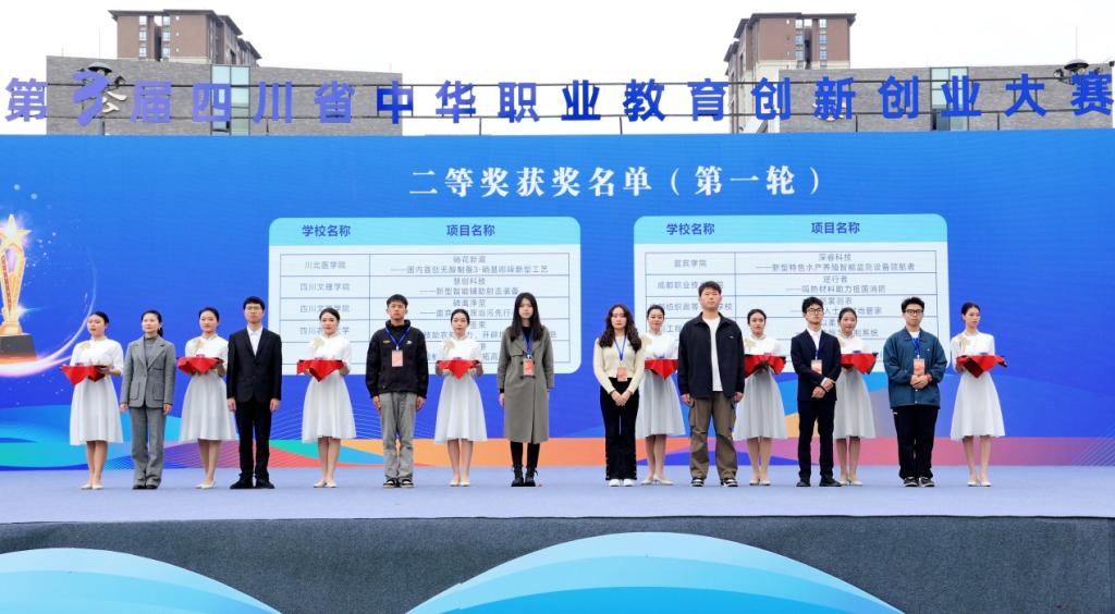本届大赛由省委统战部、自贡市委指导,自贡市政府支持,省中华职教社、教育厅、人力资源社会保障厅、省总工会、省科协、省工商联联合主办,以“职教育工匠·双创筑梦想”为主题,于去年9月启动,历时7个月,吸引了全省59所院校共有441个项目参赛,遴选102个项目进入总决赛,分中职、高职、本科3个组别,最终评选出一等奖12个、二等奖18个、三等奖72个。