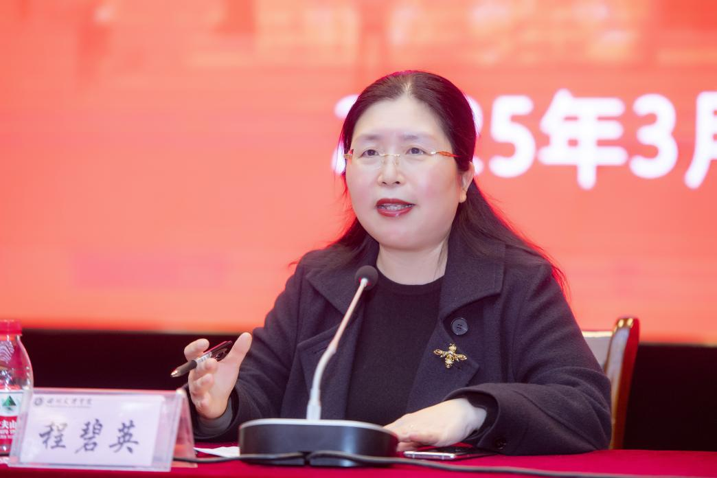 程碧英指出,学校高度重视人工智能赋能课程建设,积极回应学生对AI技术融入学习全过程的期盼要求。为进一步推进教师利用AI技术赋能教学全流程变革,她要求:一要强化学习,做好课程组集体备课。在混合式教育教学新型态背景下,专业教师要做好学习提升,加强集体备课,探索人工智能赋能“集体研训——课例打磨——反思迭代”闭环备课机制。二要强化应用,做好智慧课程建设。通过人工智能赋能“课前备课——课中互动——课后测评”教学闭环,重塑课堂生态。三要强化引领,做好教研教改。人才培养要理论与实践并重,积极探索和创新人工智能在教学中的应用,实现人工智能赋能课程建设真正落地生根,开花结果。四要强化指导,做好课程建设组织工作。教务处和二级学院要做好学校智慧课程立项项目建设指导工作,切实履行课程建设指导主体责任,加强多元培训,强化沟通联动机制,提升课程建设成效。