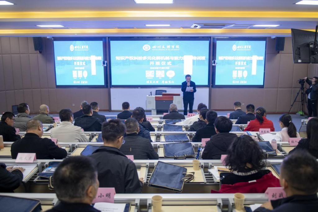 11月14日,知识产权纠纷多元化解机制与能力提升培训班开班式在ac米兰举行。副校长徐晓宗致辞,达州市市场监督管理局党组成员、副局长郑渠讲话,政法学院、知识产权学院院长刘长江参加开班式。政法学院、知识产权学院党委书记岳臣忠主持开班式。