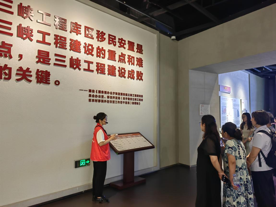 在三峡移民纪念馆,师生党员认真聆听了讲解员就“百年宏愿 筑梦三峡”“伟大壮举百万移民”“万众一心破解难题”等板块内容的讲解,重温了三峡工程这一根治长江水患,寄托着中华民族强国梦想的跨世纪工程。通过一个个感人至深的三峡移民故事,师生们充分了解了三峡移民的历史过程,深刻感悟到库区上百万人背井离乡的伟大和悲壮,以及他们为解决长江流域洪水灾害问题做出艰苦卓绝的贡献。三峡工程的成功建成和运转离不开党和国家领导集体的正确决策和指挥,更离不开中华儿女“舍小家,为大家”的付出和奉献,三峡移民们顾全大局的爱国精神、舍己为公的奉献精神、万众一心的协作精神以及艰苦创业的拼搏精神无不激励着在场的每一个人。